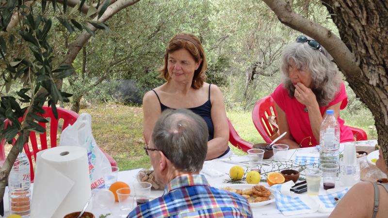 Wir gingen mitten hinein in einen Olivenhain und machten an einem schattigen Plätzchen, zwischen den respekteinflößenden, uralten Bäumen ein gemütliches griechisches Picknick mit der ganzen Familie. Während unsere Freunde uns viel Wissenswertes und Weises über die lokale Flora und Fauna erzählten, probierten wir allerlei selbstgemachte Köstlichkeiten.