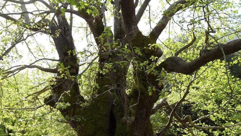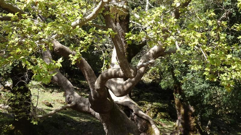 Wie ein kleiner Zauberwald wirkt der magische, mit uralten Platanen bewachsene Platz an dem wir schließlich ankamen. Wir machten hier erst einmal Rast und stärkten uns mit einem leckeren Picknick. Bevor der Großteil der Gruppe wieder den Abstieg antrat, ruhten wir uns noch ausgiebig auf der herrlichen grünen Platanenwiese aus und genossen die besondere Stimmung des Ortes.